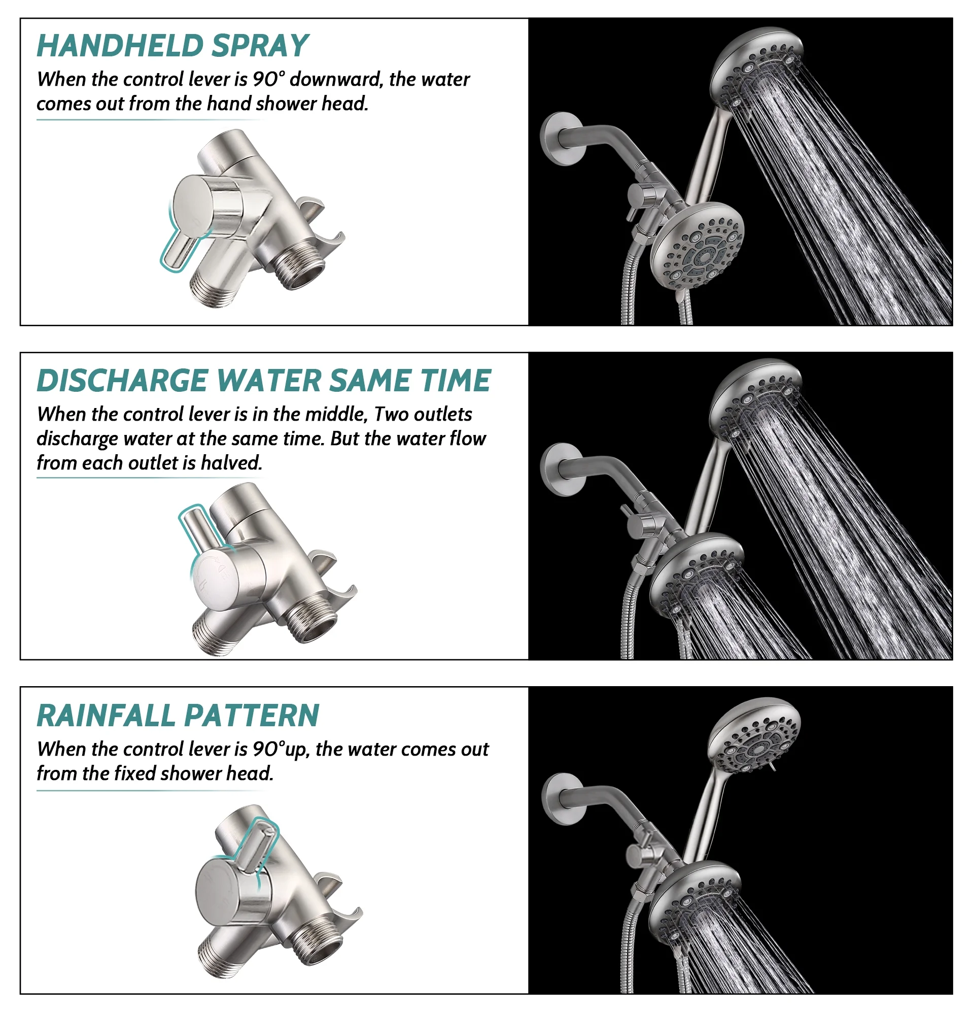 $68.29Our shower is equipped with dual shower heads and multi-function settings, so that you can feel different fun in the shower. After working for a day, you can wash away your troubles and fatigue, enjoy a relaxed shower, and then sleep well to meet a better tomorrow. Both shower heads have six functions: Light mist, Light mist + Rainfall, Rainfall, Powerful water jet + Rainfall, Power water jet and water saves trickle mode.