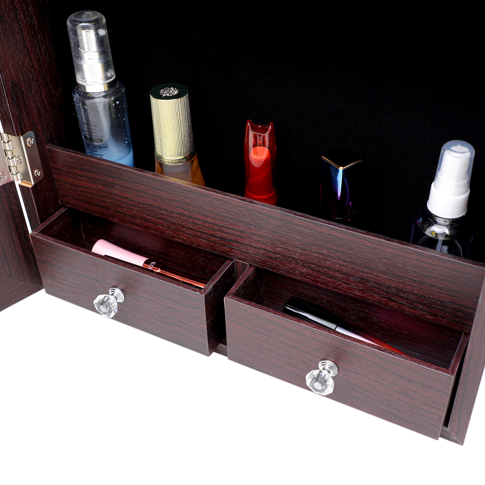 6-LED Light Jewelry Armoire Lockable Wall Door Mounted Mirror Jewelry Cabinet Armoire Storage Organizer Gift Brown