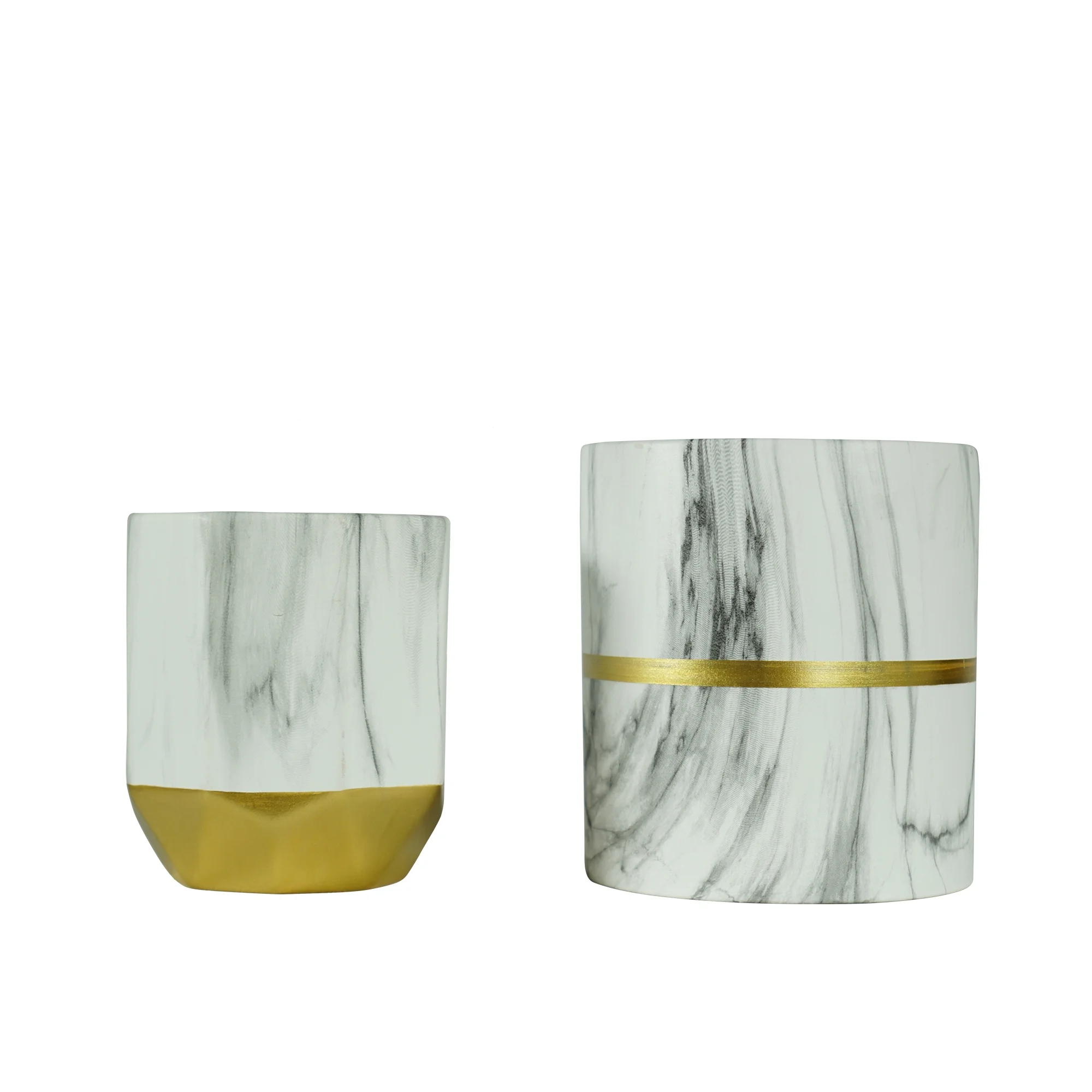 $42.99The 2-flower pots are designed in 2 different shapes. The large flowerpot is the most classic round 1, which maintains a harmonious appearance and practicality. While the small flowerpot is a special polygon design, which brings a modern sense to the whole set. Created with sturdy ceramic and painted beautifully with gold, these planters are not only breathtaking to look at but amazingly functional as well. Each set comes 2 different pieces but partly utilizes the same marble ink pattern so it harmonizes just perfectly. Larger, cylindrical shaped planter is ideal for taller plants and the smaller, asymmetrical piece is designed for your smaller plants. With drain holes and plugs, this set of eccentric planters can be used indoor and outdoor.