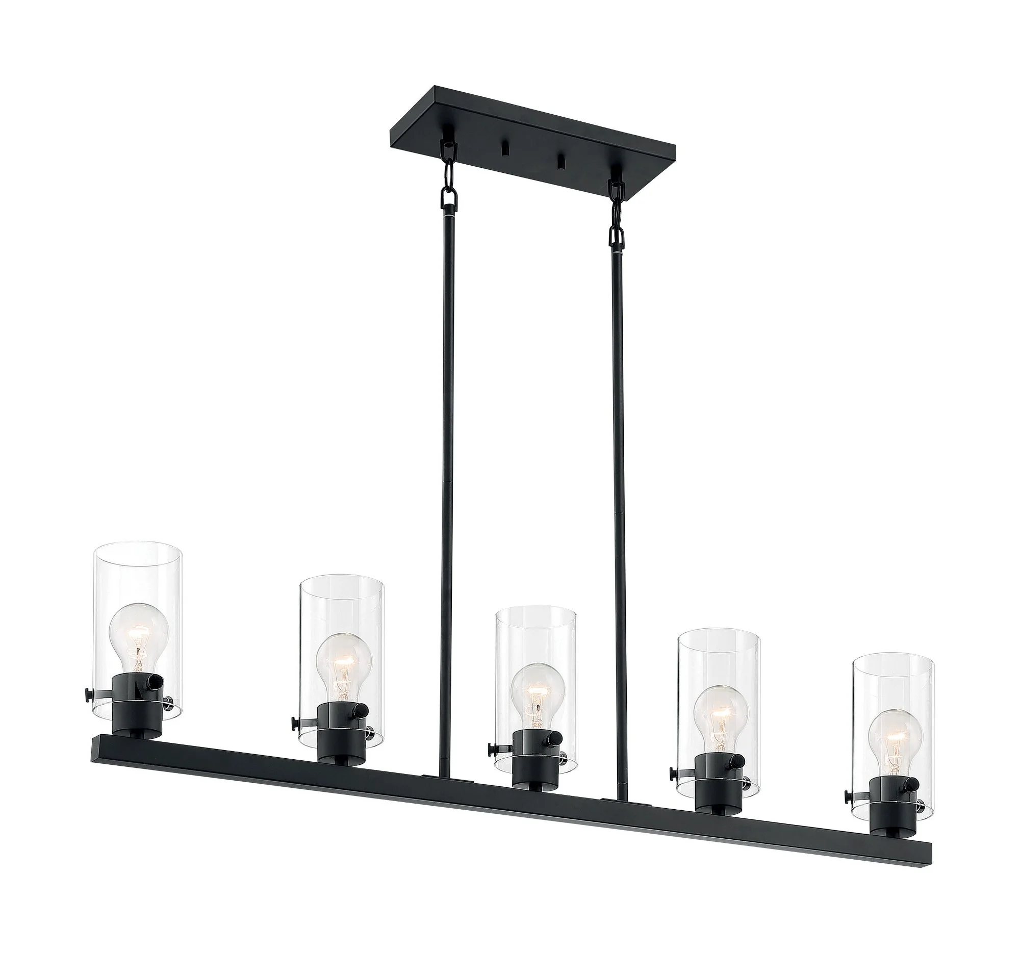 $341.41Nuvo Lighting-60/7276-Collection: Sommerset, Finish Color: Matte Black, Width: 4.5″, Height: 8.75″, Length: 38.5″, Number Of Bulbs: 5, Wattage: 60 Watts, Dimmable: No, Moisture Rating: Dry Rated, Desc: Sommerset; 5 Light; Island Pendant Fixture; Brushed Nickel Finish with Clear Glass 1 Year Limited Clear / Mounting Direction: Up / Shade Included: Yes. ,-Sommerset-5 Light Island in Modern/Contemporary Style-4.5 Inches Wide by 8.75 Inches High-Matte Black Finish