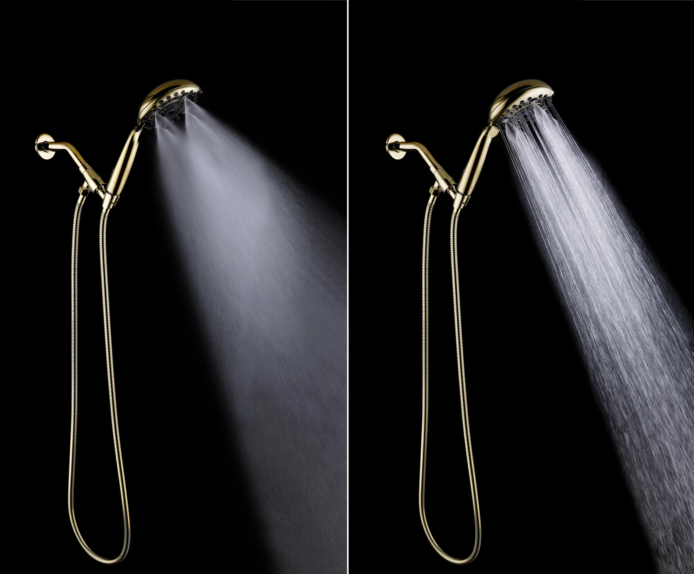 6 Spray Settings High Pressure Handheld Shower Head with Metal Adjustable Bracket and Extra Long Flexible Hose (Polished Brass)
