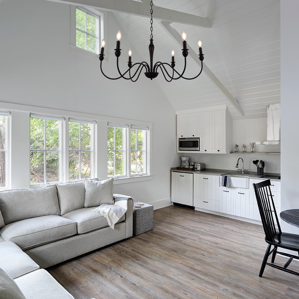 6-Light Farmhouse Chandelier, Industrial Iron Chandelier Lighting, Classic Candle Ceiling Pendant Light Fixture for Foyer, Living Room, Kitchen Island, Dining Room, Bedroom,Black