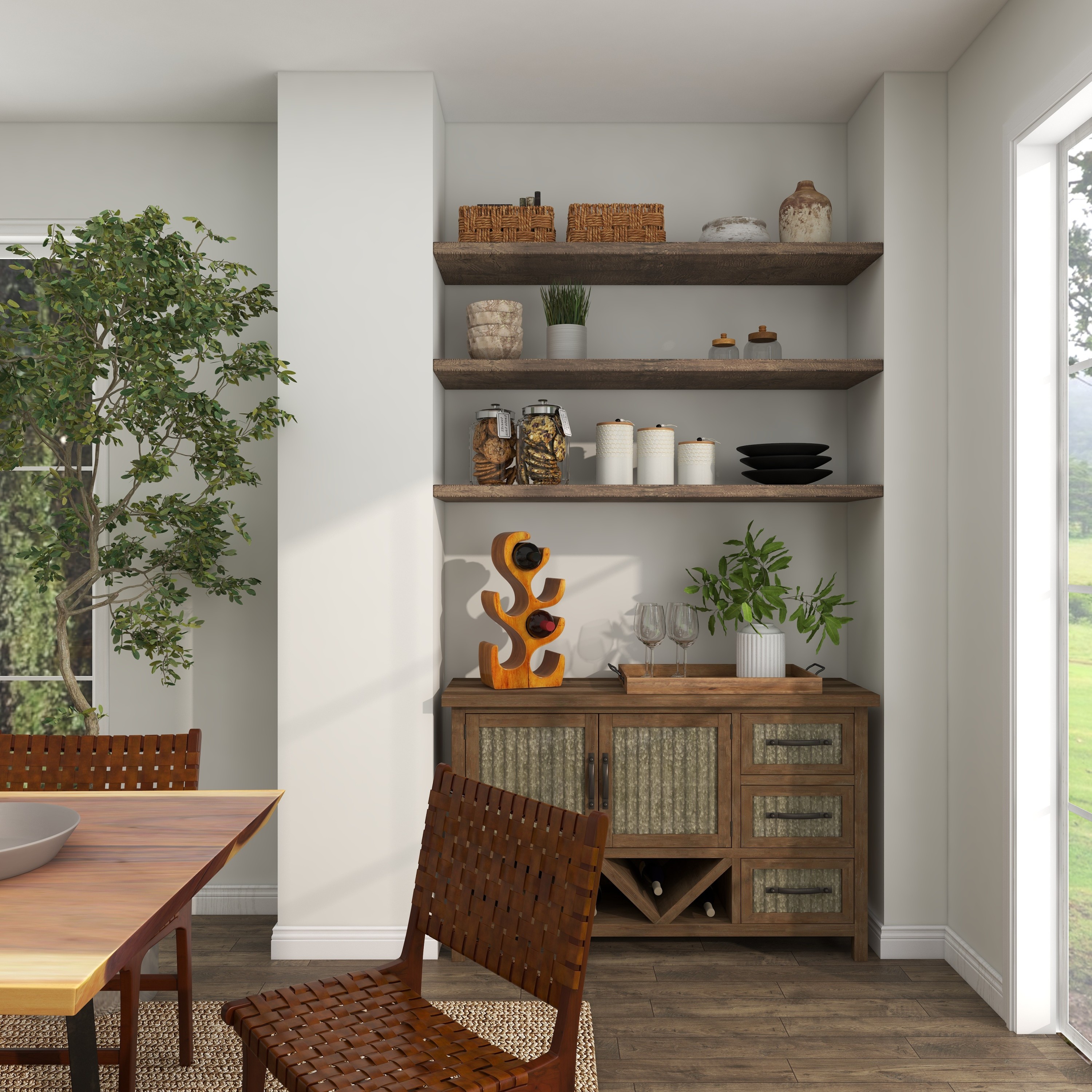 6- Bottle Brown Curved Tree Shaped Wine RackDecMode 10″ x 20″ Brown Teak Wood Curved Tree Shaped 6 Bottle Wine Rack, 1-Piece