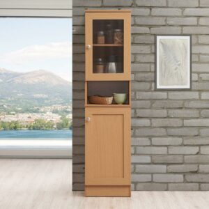 63″ Tall Slim Open Shelf Plus Top and Bottom Enclosed Storage Kitchen Pantry in Beech