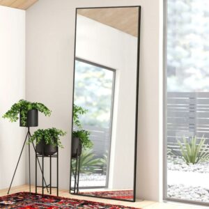 $68.80This full length mirror brings sleek modern style and big reflections to your space. The rectangular aluminum frame features clean lines and a timeless design that highlights the classic beauty of the mirror itself. The oversized 64″ by 21″ size means you’ll be able to see your full outfit from head to toe when checking your look. The high-quality float glass ensures crisp images and distortion-free reflections. Plus,the versatile design allows you to either mount the mirror on the wall or position it free-standing on the included metal stand for an easy change of views. Whether you need a full mirror to check outfits,apply makeup or simply admire your space,this modern floor mirror delivers big reflections with a minimalist aesthetic that elevates any room.