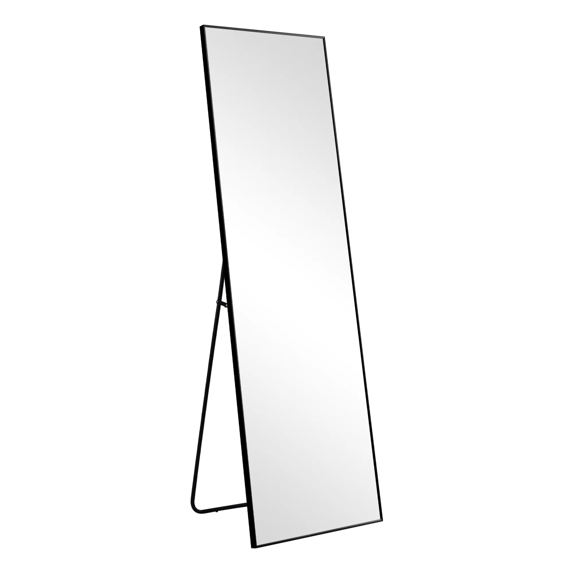 64×21 Modern Rectangle Aluminum Alloy Frame Full Length Mirror Floor Mirror with Stand,Black