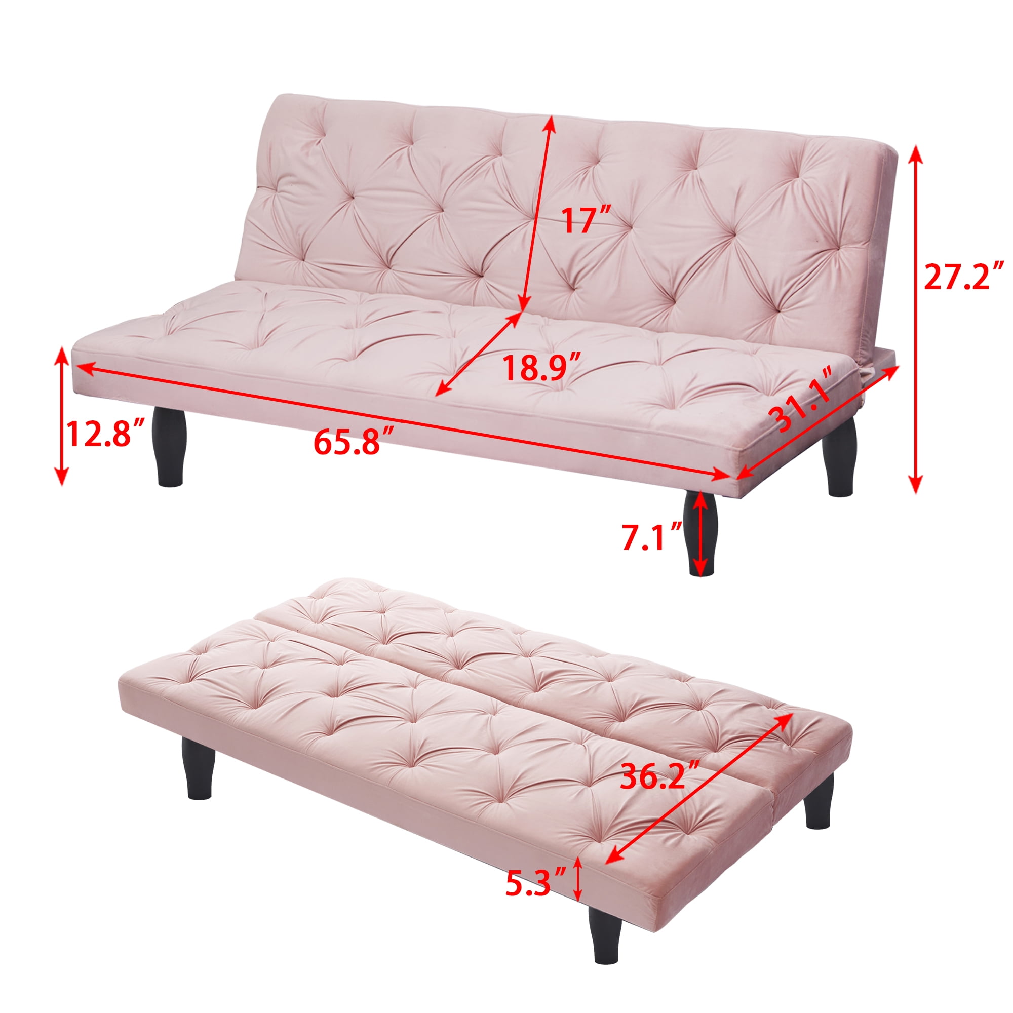 66″ Velvet Sofa Bed,Convertible Sofa Bed,Futon Sleeper Couch Suitable for Family Living Room,Apartment, Bedroom,Sofa Converts into Sofa Bed