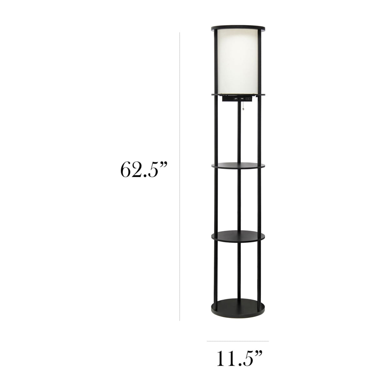 62.5″ Round Modern Shelf Etagere Organizer Storage Floor Lamp With 2 Usb Charging Ports, Black