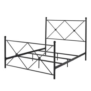 Weston Home Harrisburg Black Metal Queen Bed with Double x Headboard Design