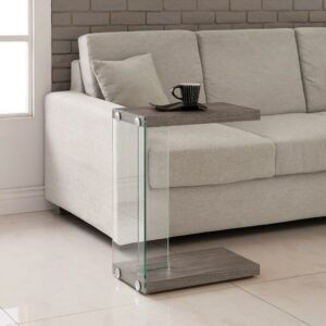 Accent Table, Side, End, Narrow, Small, 2 Tier, Living Room, Bedroom, Metal, Tempered Glass, Laminate, White, Grey, Contemporary, Modern