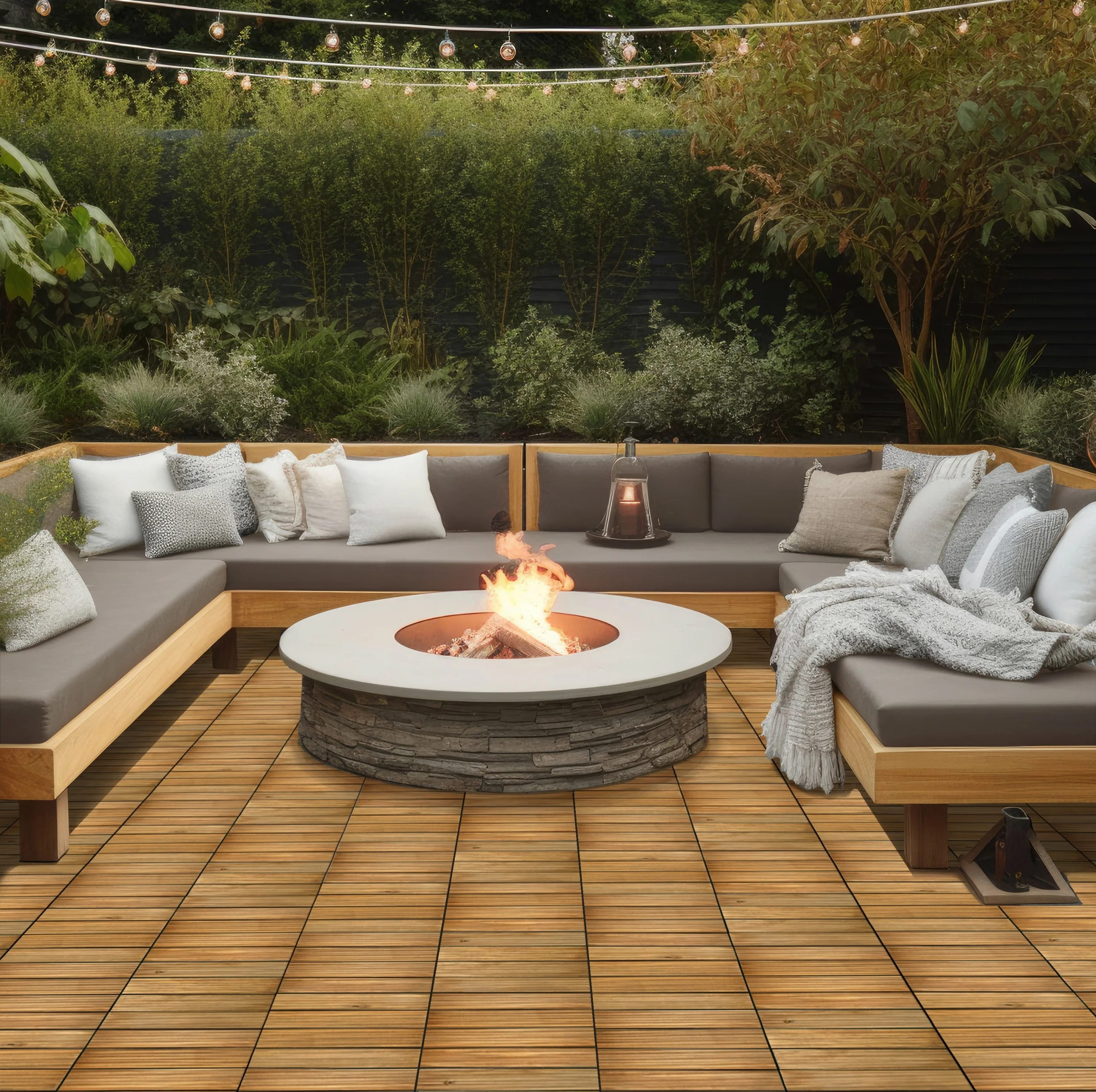 $74.96Original price was: $74.96.$66.99Current price is: $66.99.OutdoorZ Interlocking Wood Deck Tiles are the perfect solution to transform any outdoor space into a stunning oasis. Simply lay the tiles down on any flat and solid surface, interlock the connectors on each side of the tiles and watch your dream deck come to life in no time; all without the use of any tools or professional assistance! Each tile is constructed of 4-100% pine wood planks. Each plank has natural imperfections with natural variations in color for a fabulous appearance and texture. Because each plank is attached to the connector tray, OutdoorZ Interlocking Wood Deck Tiles are easy to customize and update any space. Whether you have a small balcony, a sprawling patio, a cozy rooftop terrace, or an all-weather porch; OutdoorZ tiles can be effortlessly adapted to meet your specific needs. They can be easily be taken apart for storage or used in a different configuration. Elevate your outdoor living space today with OutdoorZ Interlocking Deck Tiles. Each set comes with 27 12-in x 12-in Interlocking tiles, 27 Sq.Ft. per box. Each tile measures .8-in thick.