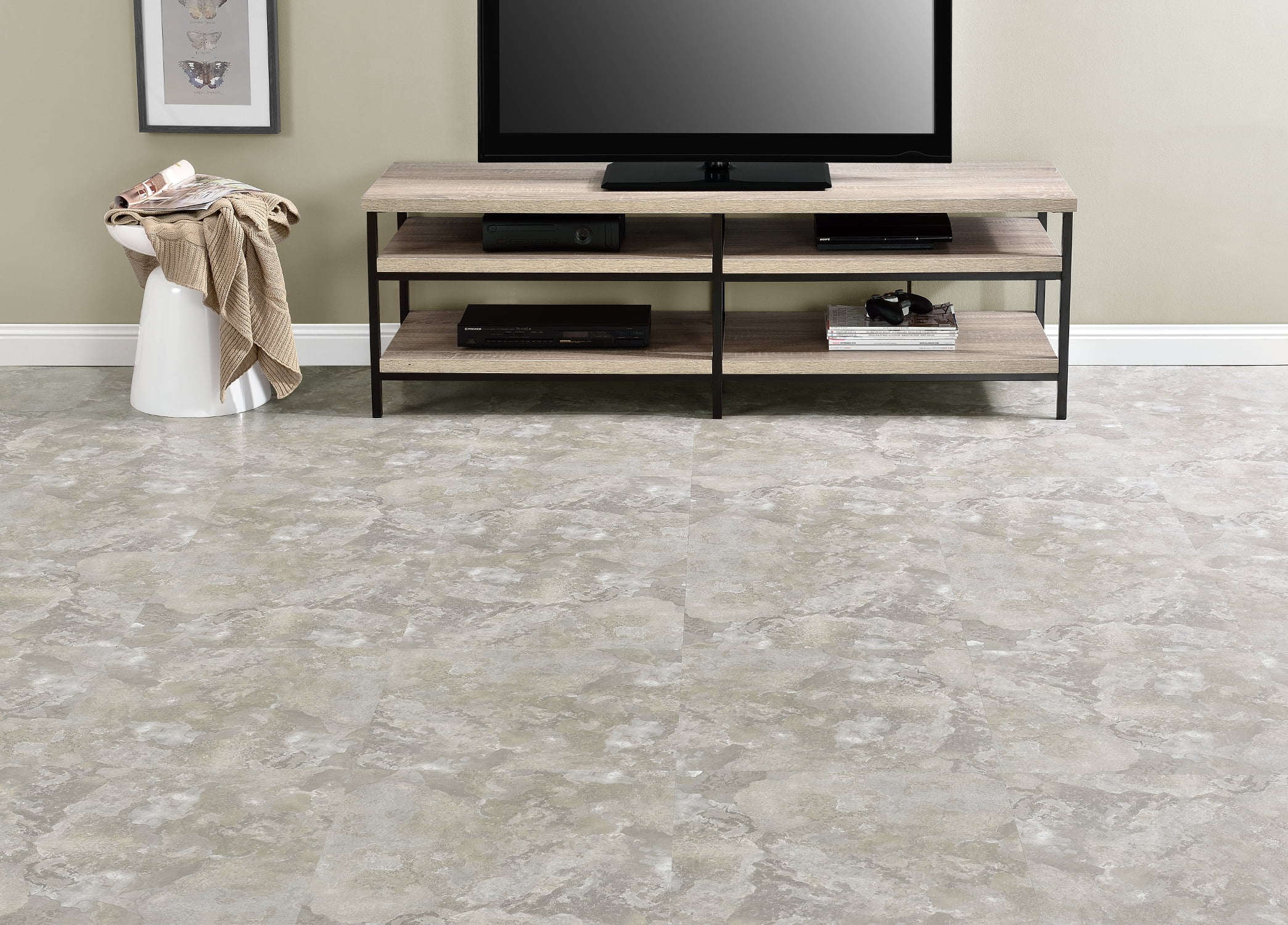 Achim Majestic Self Adhesive Vinyl Floor Tile – 10 Tiles/22.5 Sq. Ft., 18 x 18, Light Gray Slate