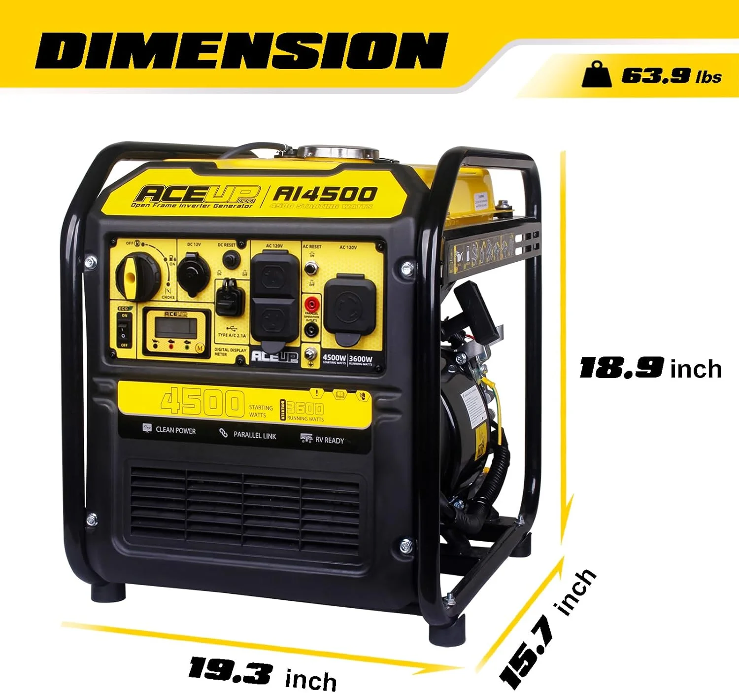 Aceup Energy 4500 Watt Open Frame Inverter Generator, Gas Generator 223CC RV-Ready, 4000W Generator EPA Compliant
