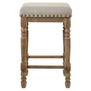ACME Farsiris Counter Height Stool in Beige and Weathered Oak (Set of 2)