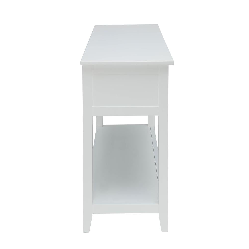 $142.75Flavius Console Table with 2 Drawers White – Saltoro Sherpi Console tables are mean to remove all the clutter of room and place it in an organized way this royal looking console table will do the same for you. This console table is made up of solid wood and thus will serve you for long. This console table comes with 2 drawers in basket design pattern and one bottom shelf. Drawers assembly will be required.