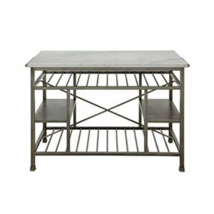 Acme Lanzo Kitchen Island in Marble and Antique Pewter Indoor