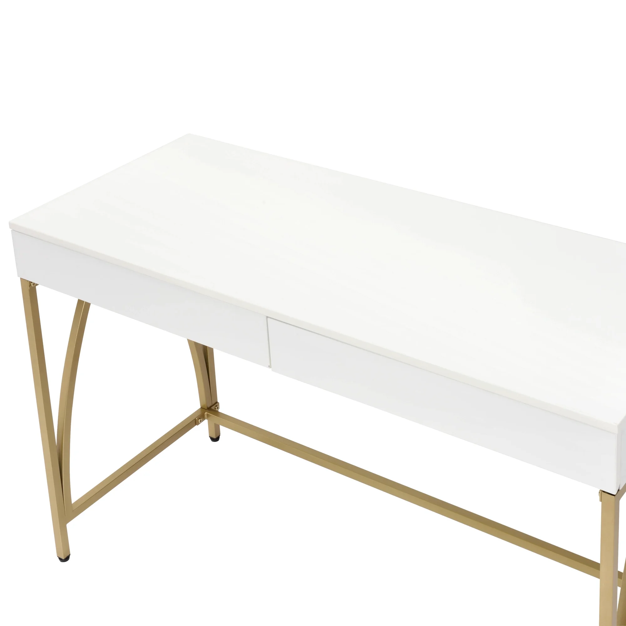 $287.17The Lightmane creates an environment you are comfortable to work at home. This writing desk is crafted with selected wood in white high gloss finish top and metal straight legs in gold finish. Also 2 storage drawers were included to store books, notebooks and pens for easy access while you work.
