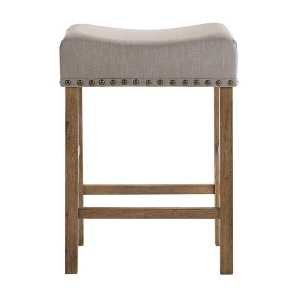ACME Martha II Counter Height Stool in Tan Linen and Weathered Oak (Set of 2)