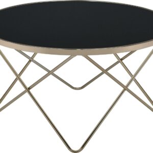 ACME Uchenna Glass Top Coffee Table with Metal Frame in Clear Glass and Gold