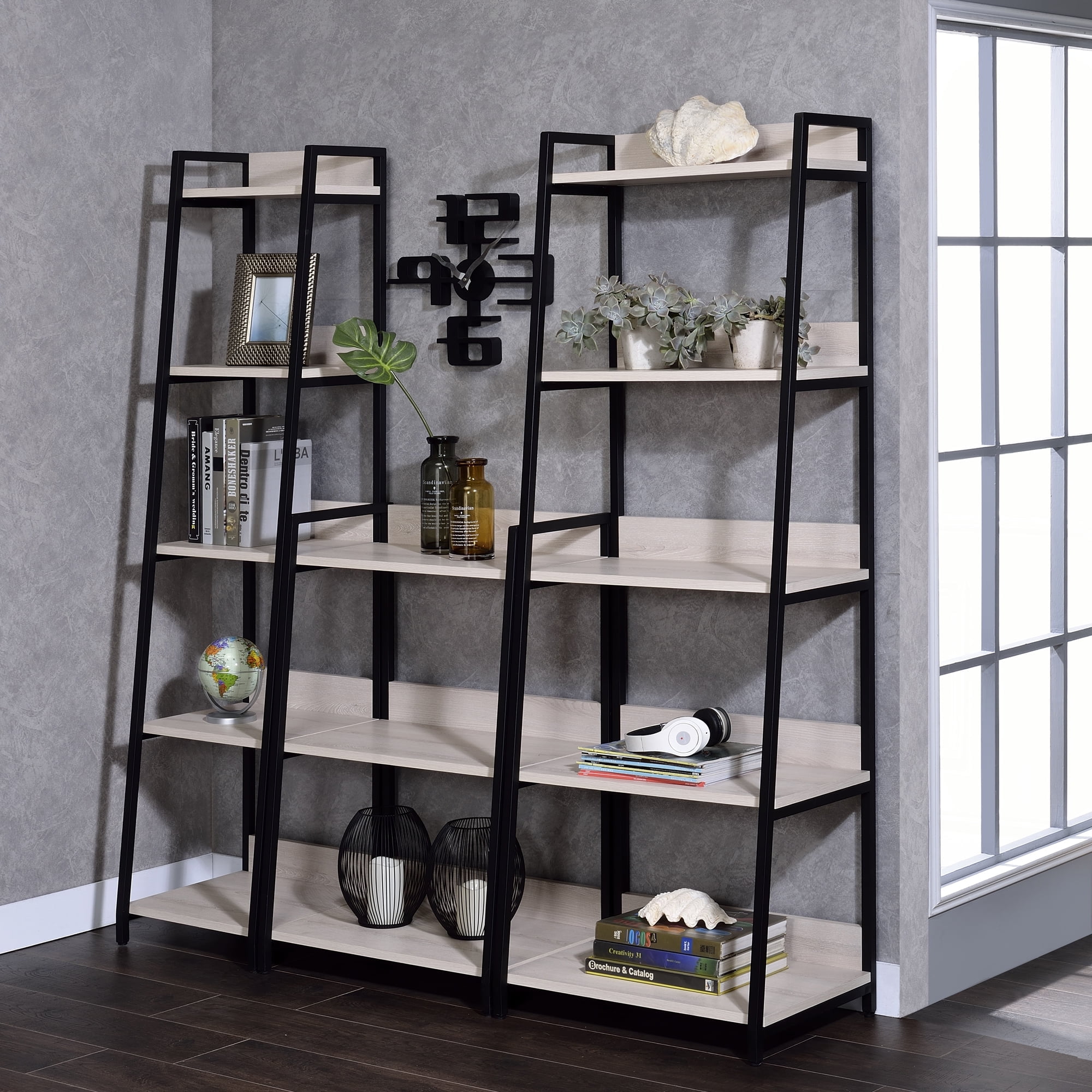 $95.76Combining simplicity with functionality, this Wendral bookshelf will sure to be an eye-catching piece in any home. Featuring a shelf storage system with a ladder-like appearance, each component is expertly crafted from the finest materials, including metal tube, selected veneers and manufactured wood. Available in three different sizes, you can mix and match to fit in various spaces and styles.