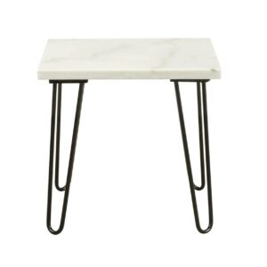 ACME Telestis 22″ Square Marble Top End Table in White and Black