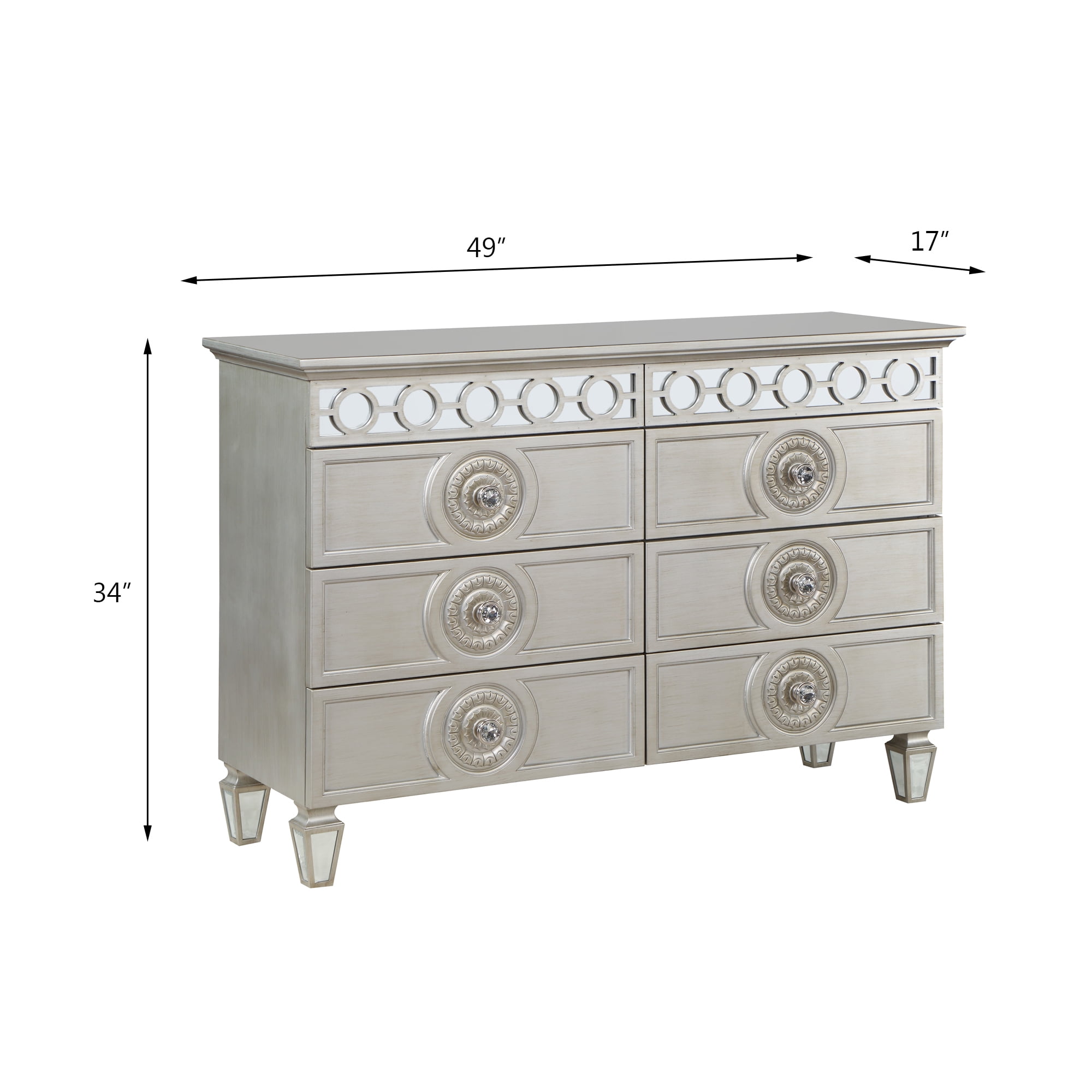 Acme Varian 6 Drawers Wooden Dresser with Mirror Inlay in Silver