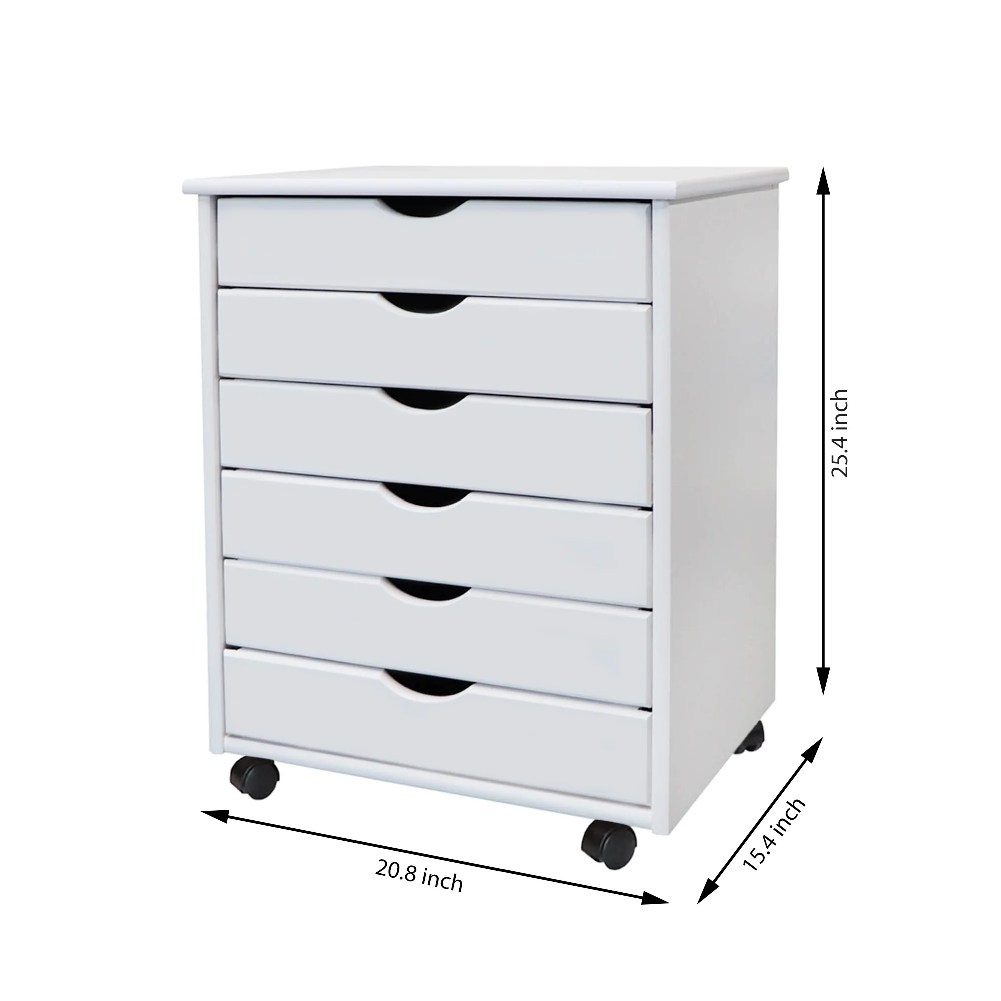 Adeptus Solid Wood 6 Drawer Original Roll Cart, White