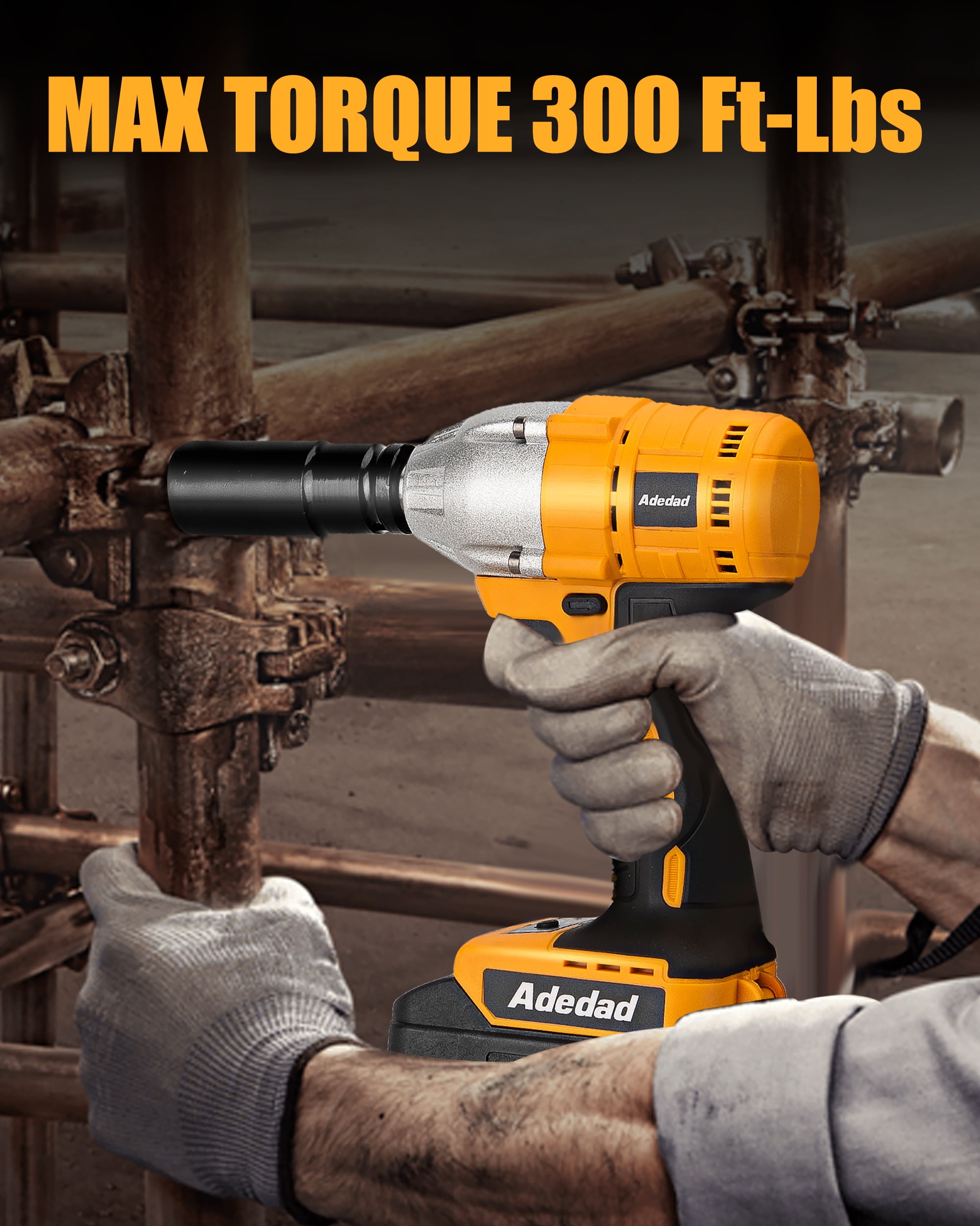 Adedad 20V Cordless Impact Wrench 1/2″, 400N.m Brushless Impact Drill Driver with 4.0Ah Battery