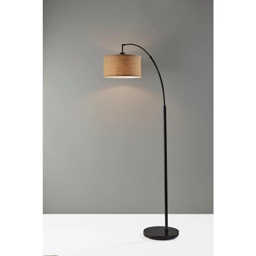 Adesso 68” Traditional Rotary Switch Antique Bronze Arc Floor Lamp with Burlap Drum Shades