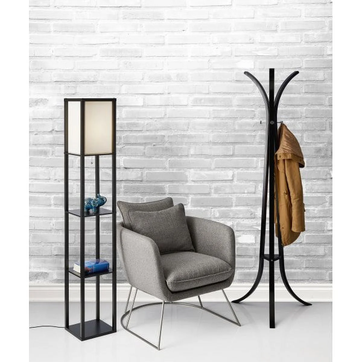 Adesso Stewart Round Shelf Floor Lamp, Black Painted MDF Shelves and Beech Wood Tubes