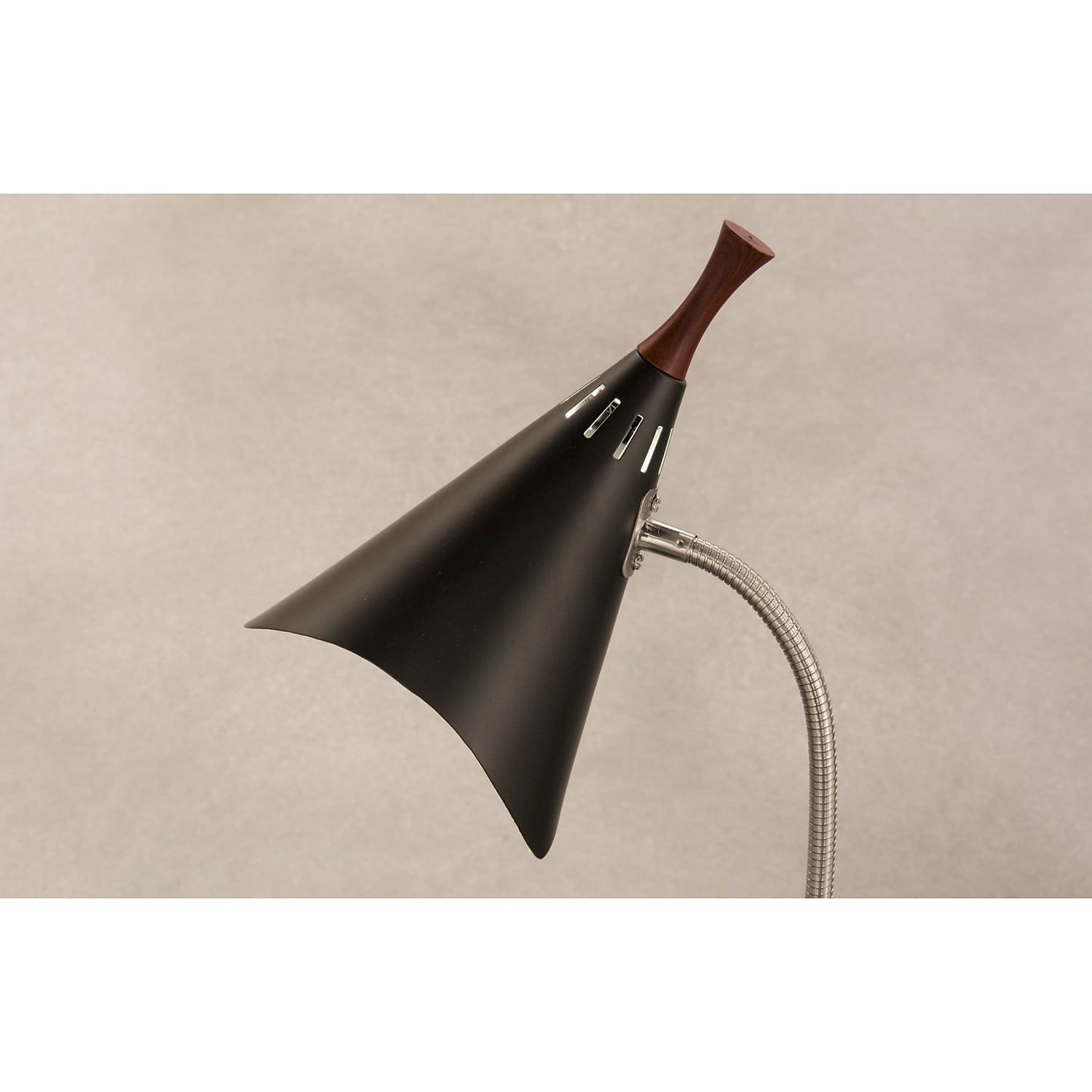 $60.20Quintessential mid-century style is easy to achieve with the addition of the Adesso Draper Gooseneck Desk Lamp.The vented black painted cone shade adjusts vertically and horizontally with a brushed steel gooseneck arm and is painted white inside to maximize illumination. A walnut wood accent on the shade softens the contemporary look to fit a variety of decor. A toggle switch located on the base turns the lamp on and off. This lamp is smart outlet compatible. Adjustable gooseneck desk lamp. Uses 1 x 60W Incandescent or 13W CFL bulb (not included). Overall dimensions” 18.5″H (max) x 7″D x 13.5″W. Brushed steel with black shade and wood accent. Black cord measures 60″L. Toggle switch located on the base. Smart outlet compatible. Some assembly required. Sold as 1 Each.