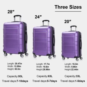 AEDILYS 3 Piece Luggage Sets, ABS Hardside Suitcase Set, TSA Lock, Purple