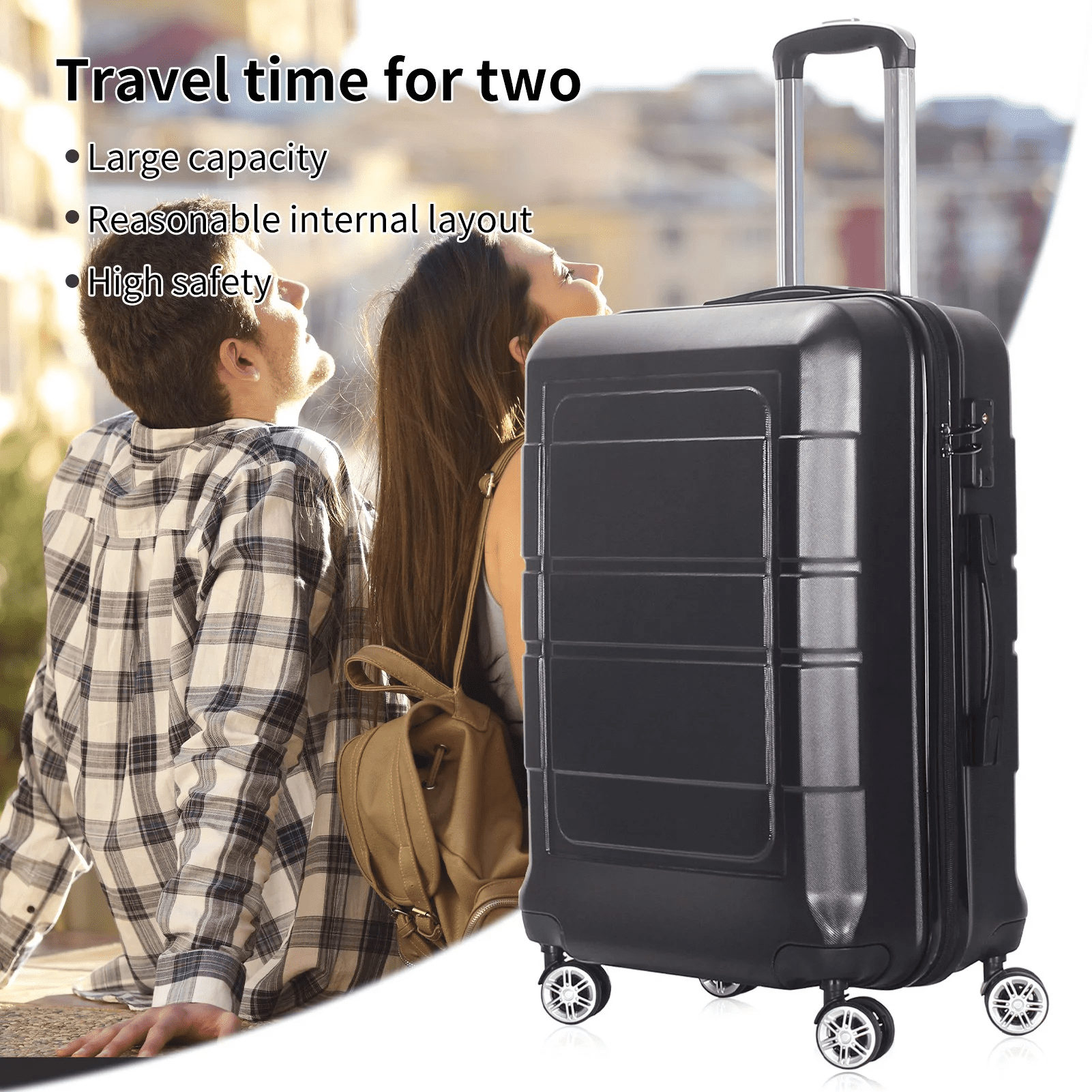 $46.35This 20 Inch Carry On suitcase is here to help you make the most out of your traveling experience, using highly tested materials to guarantee the durability and reliability of each suitcase. Zippered compartment on one side and tie-down straps on the other side for easy packing. These lightweight luggage sets have smooth gliding self-repairable oversized zippers. Get more from your luggage, perfect for business and family trips. Our carry-on is designed to be accepted by most airlines onboard and has the perfect interior for overnight capacity and weekend getaways. 20 inch suitcase suitable for carrying onto the plane. Size: L22in* W8in* H14in Weight: 6lbs Travel days:1~4days Features Lightweight PC/ABS engineered material with brushed finish. The hard-flex construction offers maximum strength, durability and a water/scratch resistant finish. 4 dual spinner 360° silent wheels for effortless mobility Full interior fabric lining with zippered compartment on one side and snap-on straps on the opposite side for easy packing Built-in 3 digit TSA approved combination lock Top and side ergonomic GEL handles for comfortable and easy lifting Push Button Locking internal retractable trolley system Smooth gliding oversized zippers