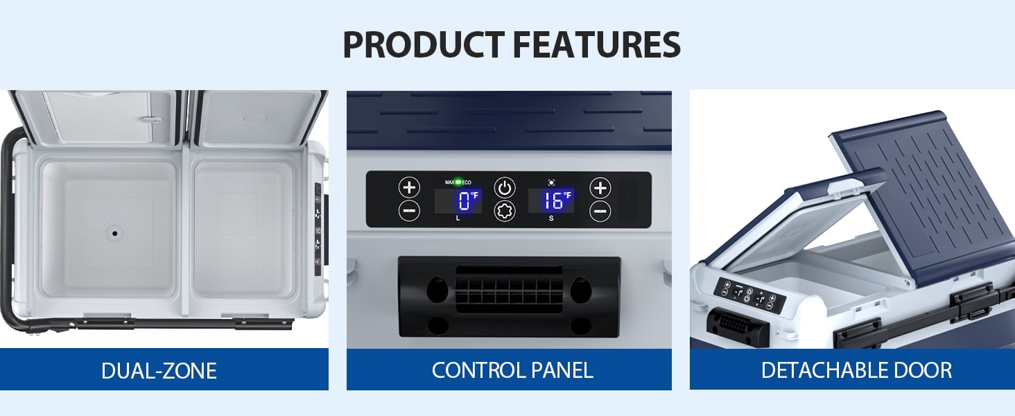 Aeitto 12 Volt Car Refrigerator, 52QT(50L) Dual Zone Portable Car Fridge Freezer -4℉-68℉ Electric Cooler Dual Temp Control Cooling Freezing 12/24V DC & 100-240V AC for Travel, Camping, RV, Road, Home