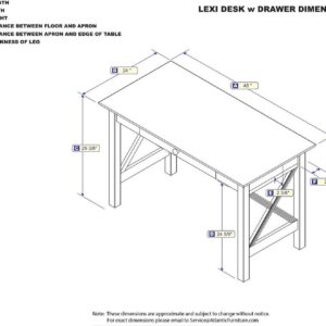 AFI Lexi Solid Wood Office Writing Desk with Elegant Felt Lined Drawer, Walnut