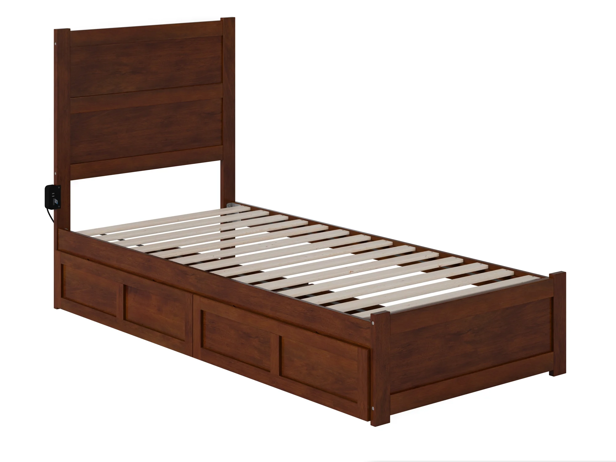 AFI Newport Twin-XL Solid Wood Foundation Bed with Storage Headboard, Walnut