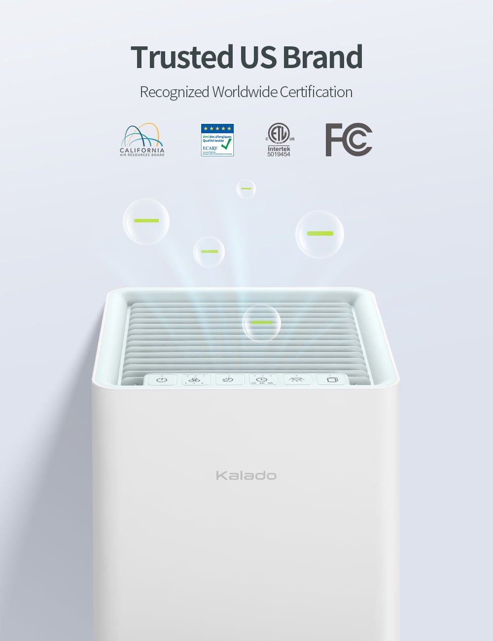 $40.41[Large Coverage]: Air Purifier for Home Have double filter that can purify the large area, making it the perfect companion for your home office, guest room, baby nursery, and more. Enjoy fresh air in minutes with the Kalado True HEPA Air Purifier. It cleans spaces up to 547 ft² in 30 minutes, 219 ft² in 12 minutes(CADR:150m3/h). [High Circulation Rate] Air Purifier for Home has a 3-stage filtration system(prefilter, activated carbon filter and HEPA filter). Over 99.97% purification rate, with H13 true HEPA triple filter, which traps viruses, bacteria, pollen,dust, and pet hair/dander etc. Enjoy your fresh life. [Quiet Operation] In sleep mode, the display light is off and the noise is reduced to 20 db, perfect for a quiet and soothing indoor environment. Sleep soundly without loud rattling coming from your air purifier.It will not disturb your sweet sleep, and even a light sleep baby can enjoy the comfortable air in the quiet night. [One-Button Control] Tired of complicated machines, Cycle through 3 fan speeds, timing settings set 2/4/8 hours, turn the air purifier on/off, and reset the Check Filter Indicator with one simple button. [Smart Filter Replacement Indicator] Air Purifier for Home are set up with a 2000 hour cartridge replacement reminder, the red indicator light will turn on when the purifier has been in use for more than 2000 hours. For the health of you and your family, we recommend that you replace the filter cartridge once every 3-6 months.