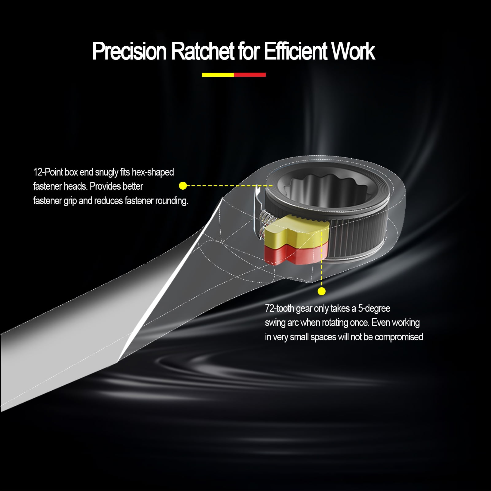 AIRAJ Ratcheting Wrench Set, 22-Piece Combination Wrench Set, SAE 1/4″ to 3/4″ & Metric 6-18mm, 72 Teeth