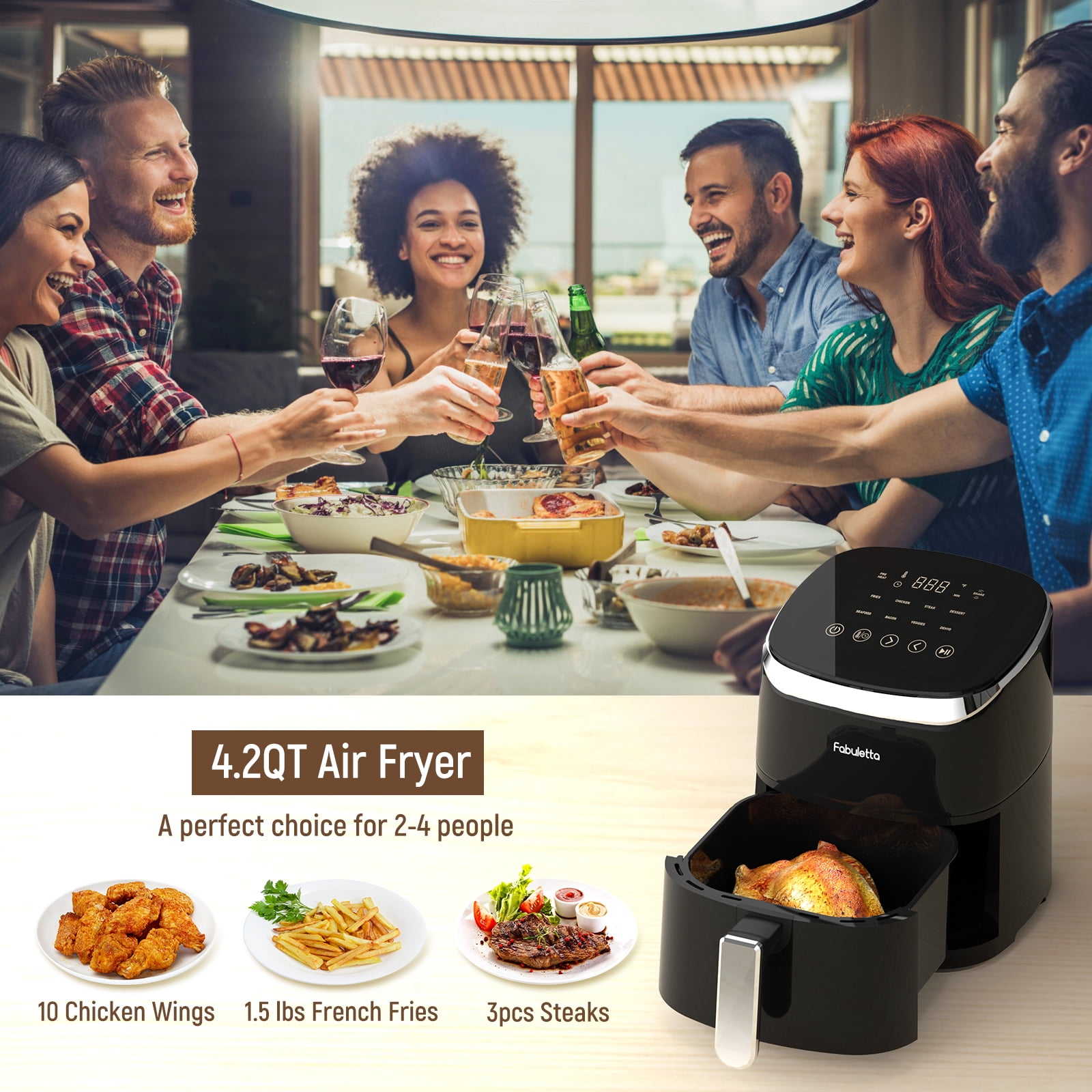 Air Fryer, Fabuletta 4.2 Qt Air Fryer Air Fryers With 9 Cooking Functions , Shake Reminder, Powerful 1550W Electric Hot Air Fryer Oilless Cooker, Tempered Glass Display, Dishwasher-Safe & Nonstick