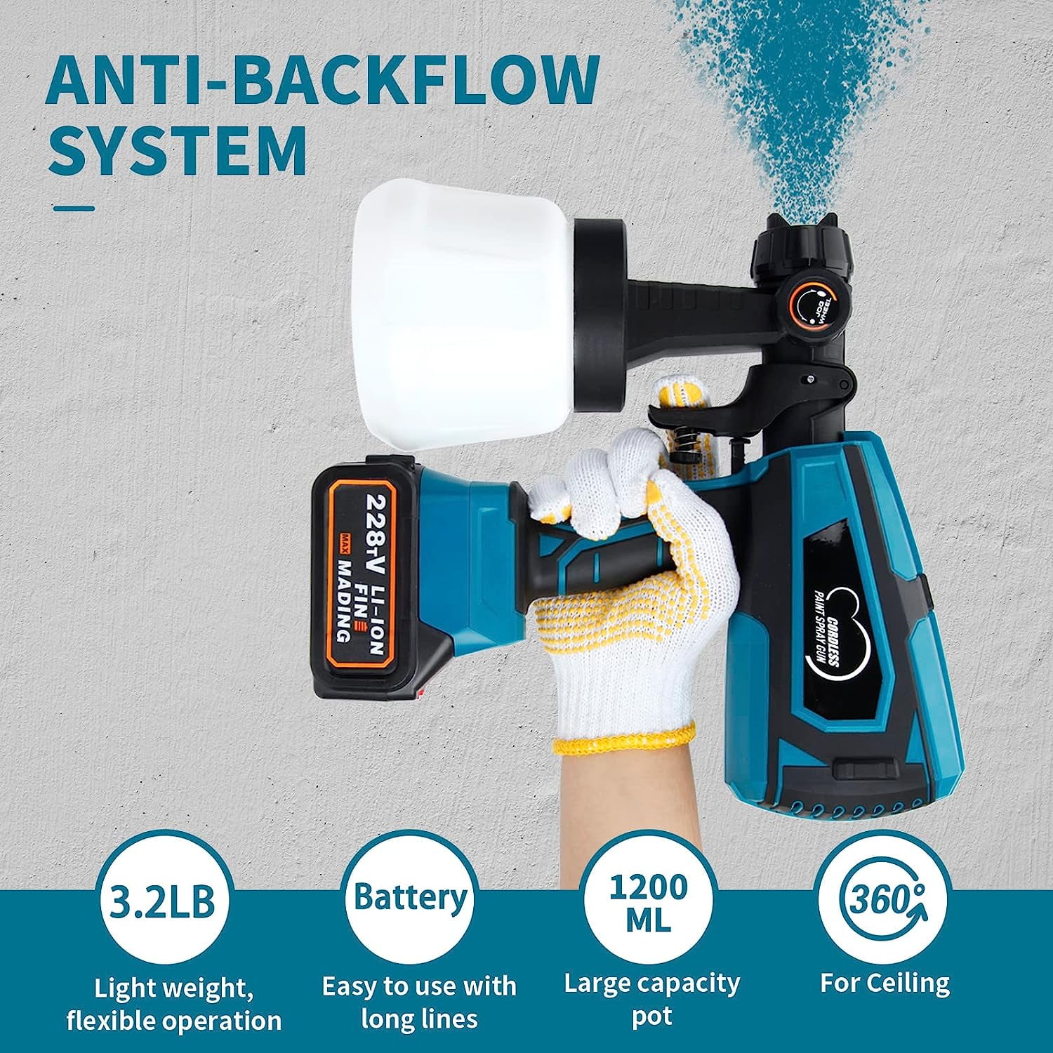 Ailongcity, 600W, 228V Blue Cordless Paint Sprayer, 1000ml Capacity, 3 Patterns, 2 Pack