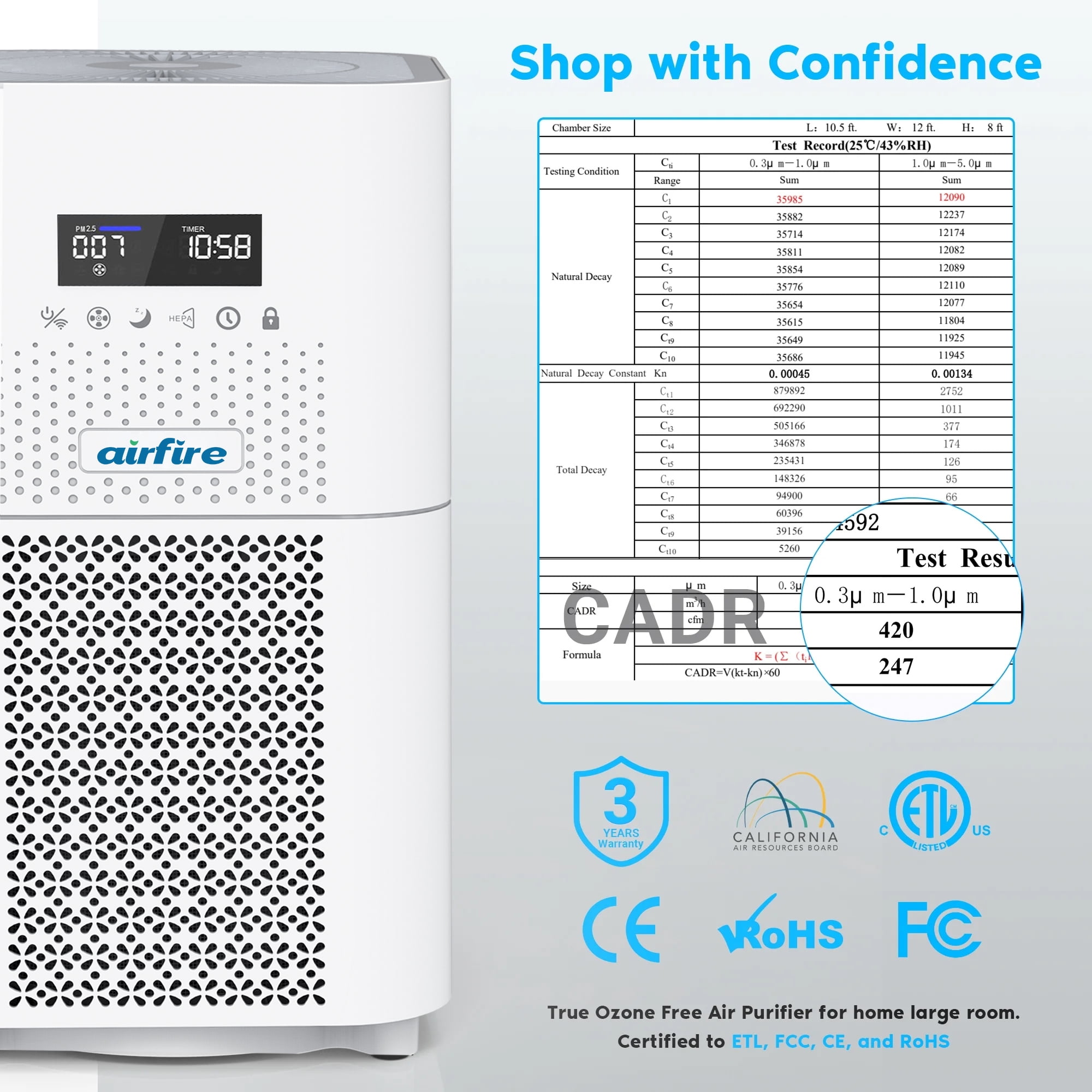 Airfire Air Purifier for Home Large Rooms, up to 2500 Sq. ft Smart WiFi Air Cleaner, Air Purifiers for Allergies and Asthma, H13 True HEPA Filter for Pet Hair, Allergens, Smokers, Odors, Dust, Pollen
