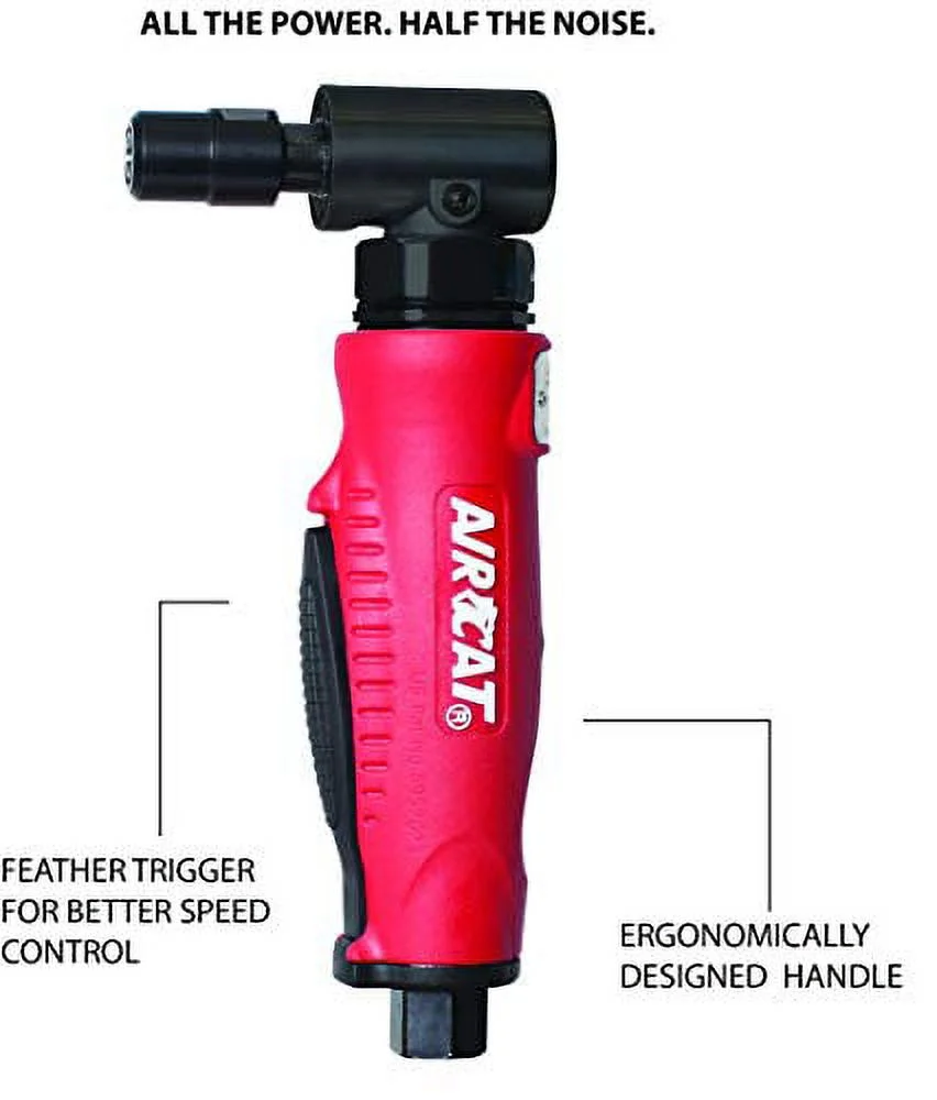 $93.74Lightweight and quiet at 82 dB 2,000 RPM free speed with an angle gear mechanism All the power at half the noise with superior mechanics and internal mechanisms Right angle die grinder includes high-quality bearing surfaces, air chambers and turbines The patented exhaust muffler/filter technology reduces the level of noise while retaining more power and torque A quiet, powerful tool ideal for shop or home applications