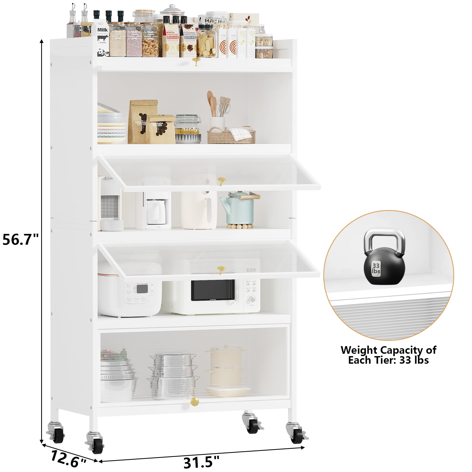 AKIUDEX 5 Tier Pantry Storage Cabinet Baker Racks with 4 Flip-up Doors, White