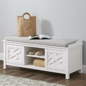 $81.30Craftsbury is a transitional collection made to blend into any space. In both dove gray and white, these pieces are the perfect compliment to your décor. This 36″ Wide, wood bench is versatile and durable. In your entryway, dining, or living room this bench provides extra seating or storage space. The extra shelf is perfect for easy storage for shoes, bags and more.