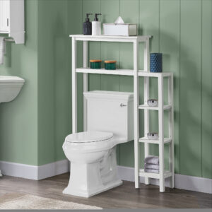 Alaterre Furniture Dorset 17″W x 36″H Bathroom Cabinet, Elegant Shelving Hutch with Open Shelves for Storage, White