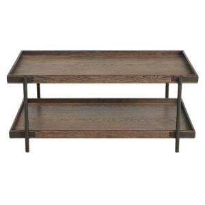 Alaterre Furniture Kyra 42″L Oak and Metal Coffee Table with Shelf, Brown