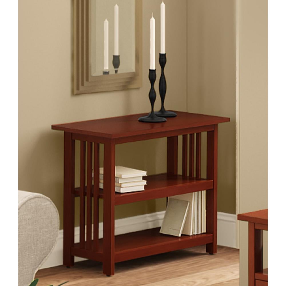 Alaterre Furniture Mission Style Under Window Bookshelf, Adjustable Two-Shelf Storage Organizer, Versatile Arts and Crafts Style, Perfect for Office or Living Room, Cherry Finish