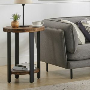 Alaterre Furniture Pomona 20″ Round End Table with 2 Shelves, Solid Pine Wood Top, Metal Legs, Rustic Natural Brown Finish