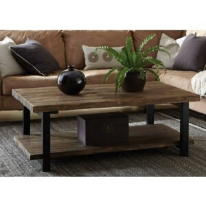 Alaterre Furniture Pomona 42 in. Solid Pine Wood and Metal Coffee Table, Rustic Natural