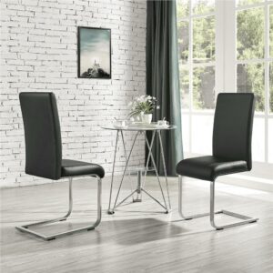 Alden Design 2PCS Modern PU Leather High-back Dining Chairs for Kitchen, Black